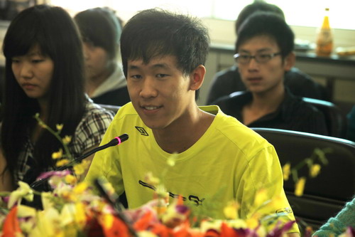座谈会在轻松愉悦的节日氛围中进行,在校学生代表商学院温切姆·周庆雨、 TUC-FIU 合作学院冶娜、机械工程学院赵元汇、法学院爱丽美热·艾海提等四位同学首先在会上进行典型发言。同学们非常高兴与学校领导老师共度中秋,对学校为学生成长进步所做努力表示感谢,并畅谈了自己对祖国繁荣、家乡变化、学校发展、个人进步的感受。随后,师生在融洽的氛围中进行了充分的交流,对祖国 60 年发展所取得的伟大成绩抒发了自豪之情,对学校 30 年建设发展所取得的不断进步感到骄傲。