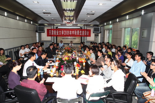 10 月 3 日 ,正值中秋佳节,校党委学工部在多功能会议室组织召开 2009 年中秋师生座谈会。校党委书记陈学奇、党委副书记杨万义出席会议并讲话。宣传部部长史瑞杰、校办主任庞文生,各专业学院分管学生工作书记、副书记,学工部、学生处全体老师及 12 个民族 31 名在校学生代表参加座谈会。