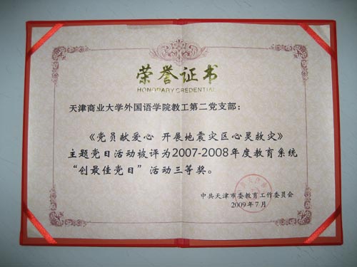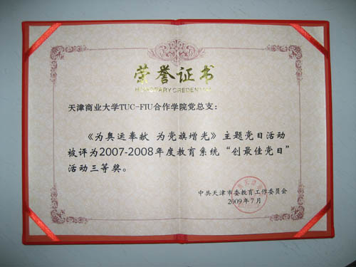 在此基础上,学校向教育工委上报了beat365官网“创最佳党日”活动开展情况,并推荐部分活动参与教育工委“创最佳党日”活动评比。经过教育工委的认真评议, TUC — FIU 合作学院的“为奥运奉献,为党旗增光”、外国语学院的“党员献爱心,开展地震灾区心灵救灾”被评为 2007-2008 年度教育系统“创最佳党日”活动三等奖。