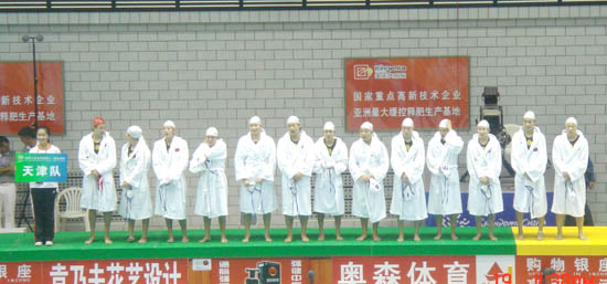 天津与四川两队十分熟悉,都知此役至关重要,都排出了最强阵容,哨声一响立即进入了鏖战状态,直至第一节近半天津队才首先打破僵局。第二节、第三节天津队打得并不顺利,仅以微弱优势领先。第四节天津队趁对方体力不支之机突然发威连下四城,终以 10 比 4 锁定胜局,保持了对四川队的不败战绩。 20 日下午 5 点,天津队将迎来最后一个也是最强一个对手——广西队。