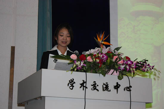 校学生会主席张环宇致开幕辞。她表示,校学生会经过精心策划,隆重推出第六届“黄金学术月”活动,希望通过此次活动扩展同学们的视野,提高同学们的综合素质,为学术发展提供更为广阔的平台,为商大今后的发展添砖加瓦!校学生会学习部部长李思霖介绍了本届“黄金学术月”的主要活动。校学生会将举办英语四、六级讲座,优秀大学生经验交流会、黄金学术月闭幕晚会。各学院也将学院特色和庆祖国六十华诞结合起来,举办形式多样、内容丰富的主题活动。校学生会副主席梁晨宣读活动倡议书,向全体同学发出以下倡议:一、心怀祖国,自强不息。二、认清使命,勇担责任。三、树立信念,感悟书香。号召同学们以第六届“黄金学术月”为契机,一起去期待明天的祖国,一起去领略书本的墨香,一起为中华之崛起而奋斗!