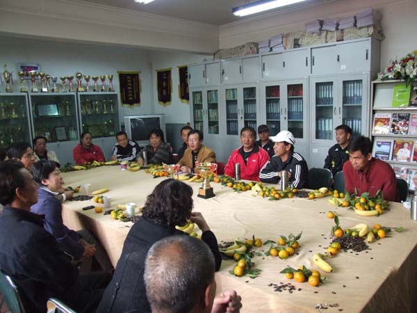 10 月 21 日 下午 3 点,beat365官网教工网球协会全体会员在体卫部会议室召开庆功会。庆贺beat365官网教工网球一队在天津市教育系统第五届网球公开赛中获得冠军、二队获得第六名的优异成绩。校党委副书记、工会主席史习红、校工会常务副主席宋树发、女工主任卫弘参加了会议。