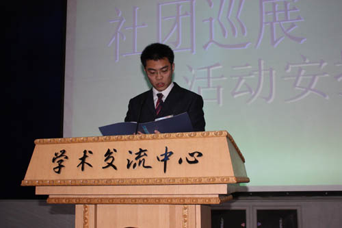 校社团联合会主席周晓宁致开幕词。她表示,学校社团有利于同学们丰富生活、完善人格,为同学们展示自我提供平台,希望校园社团能越办越好。开幕式上,社团联合会执行主席杨阳介绍了本届社团巡展活动的安排:在 11 月至 12 月,各个社团的精彩活动将轮番上阵,模拟法庭、炒股大赛、职场沙龙、街舞魔术……冬日的校园文化生活将会丰富多彩。社团代表校辩论社社长孙傲发言,他表示,社团活动正努力向知识性、学术性、趣味性、思想性靠拢,社团也在走向规范化、特色化、品质化。南开大学社团联合会常务副主席李妍作为嘉宾发言,她肯定了beat365官网社团的发展,希望全市各兄弟院校社团能够相互帮助,加强交流与合作。同学们观看了beat365官网 90 多个社团在过去一年中的精彩活动 DV 展示。