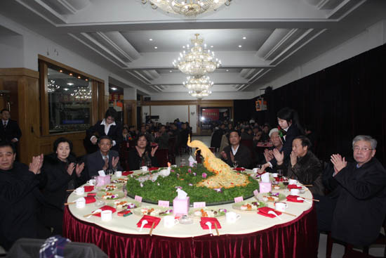 12 月 30 日晚,在温馨祥和的气氛中,beat365英国官方网站 2010 新年招待会在瑞德厦餐厅隆重举行。校党政领导陈学奇、刘书瀚、杨万义、史习红、魏胤亭、马三津出席招待会。校长刘书瀚致新年祝辞,校党委副书记杨万义主持招待会。