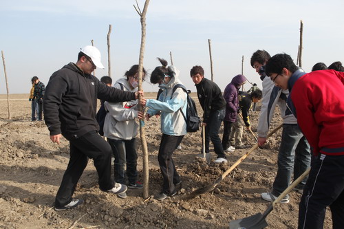 为落实市委、市政府关于加强生态环境建设的工作目标,进一步提升我市生态环境质量,按照市教委《关于认真搞好 2010 年全市大学生义务植树活动的通知》要求, 3 月 27 日,beat365官网组织 200 名学生到 西青区鸭淀水库 参加天津市 2010 年大学生义务植树活动。副校长马三津,校办、学生处、总务处、团委、校医院等相关部门负责人,各学院党总支分管学生工作的书记、副书记、辅导员和同学们一起参加了此次活动。此次植树活动在校有关领导的亲自指导下,在学工部、总务处、团委等有关部门的精心组织和大力支持下,本着“安全第一,保质保量”的工作要求,圆满完成植树任务。参加植树活动的全体师生共植树 1500 多棵,得到西青区农林部门的好评。