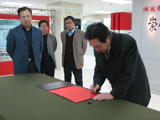 会后,刘书瀚校长一行在河北农大王志刚校长的陪同下,参观了河北农业大学“太行山道路”展馆和文化园,最后刘校长为河北农业大学题词留念。