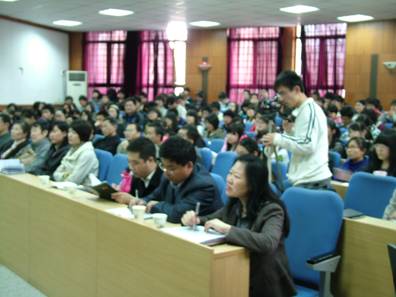 三号教学楼 110 教室座无虚席。朱光磊教授学术报告的题目为“关于中国阶层分化研究的几个重要问题”。报告共分七个部分,分别是“阶层概念的提出与阶层分析的意义”、“改革阶层分化的历史前提和历史契机”、“中国阶层分化的基本格局”、“中国社会阶层分化的主要特征”、“阶层关系与贫富差距问题”、“阶层分化与社会进步和政治发展”以及“ 21 世纪初阶层分化展望”。朱教授的报告,系统全面,深入浅出,既充分呈现了 阶层分化研究领域的最前沿问题,又紧密联系实际,使全院师生受益匪浅。报告结束后,朱教授同师生们就贫富差距、土地制度改革、考研等问题进行了广泛互动,现场气氛十分热烈。朱教授深厚的学术功底和幽默风趣的报告风格,给在场的师生们留下了深刻的印象。