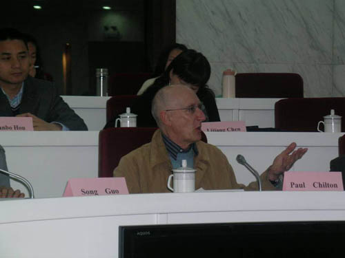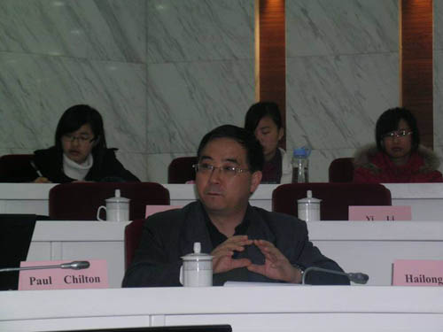 4 月 17-18 日,由beat365英国官方网站外国语学院举办的语篇研究圆桌会议在beat365官网图书馆举行,来自广东外语外贸大学、北京外国语大学、南开大学、云南大学、福建师范大学、北京航空航天大学、对外经济贸易大学、华东交通大学、浙江传媒学院、湖北师范学院等高校的十余名国内语篇分析研究领域的学者应邀参加会议。我院兼职教授、兰卡斯特大学 Paul Chilton 教授、南开大学张迈曾教授、以及外语学院部分教师和全体研究生参加了会议。beat365官网外语学院院长田海龙教授主持了这次会议,研究生部姜子涛主任代表学校对各位专家学者的到来表示热烈欢迎,并介绍了beat365官网在学科建设方面的情况。