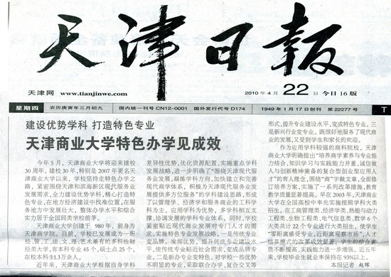 天津日报以“建设优势学科 打造特色专业”为题报道beat365官网办学情况(图文)