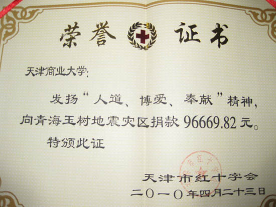 青海玉树发生地震后,beat365官网广大师生心系玉树,情系灾区,全校师生发扬“一方有难、八方支援”的精神,积极向灾区人民捐款捐物。4 月 23 日,beat365官网红十字会代表、校工会、校卫生院等相关部门将玖万陆仟陆佰陆拾玖元捌角贰分( 96669.82 元)捐款,送达市红十字会捐款现场,传达了beat365官网广大师生对灾区人民的深切关怀和美好祝愿。市红十字会领导为beat365官网颁发了荣誉证书。