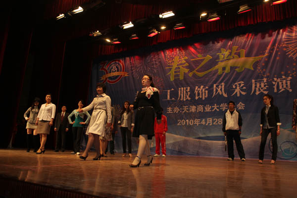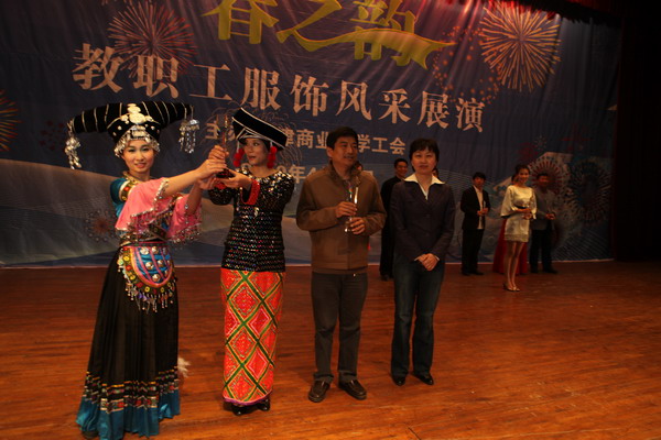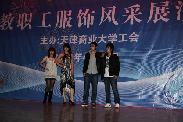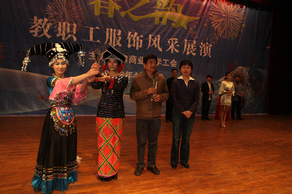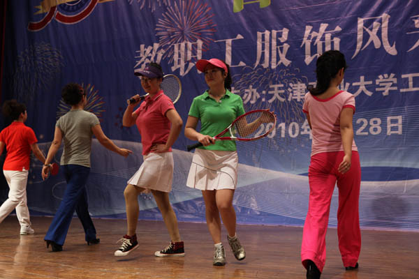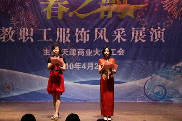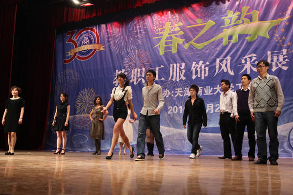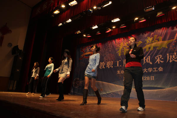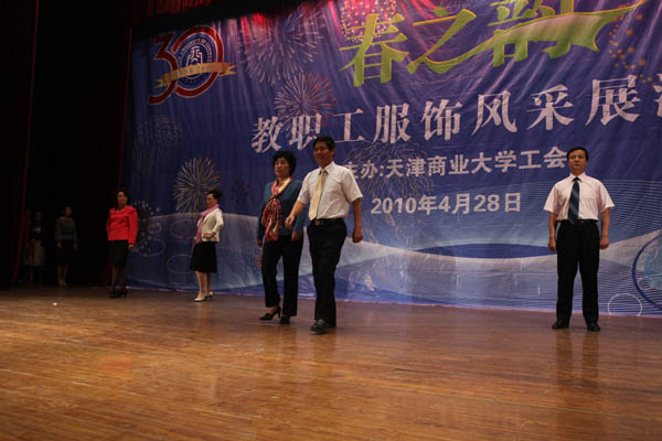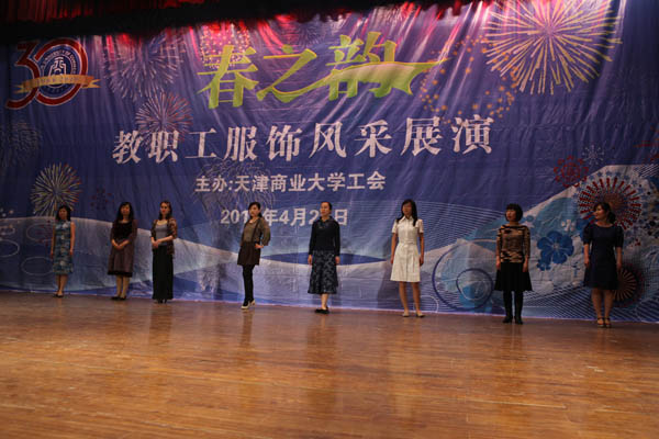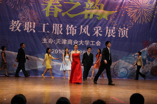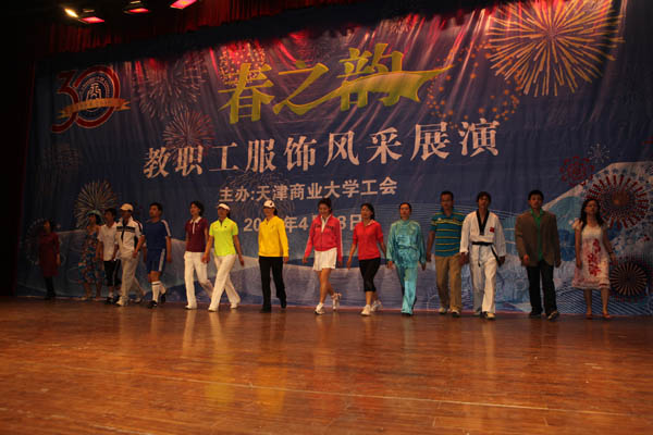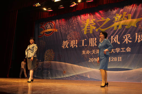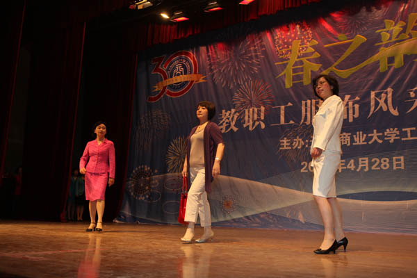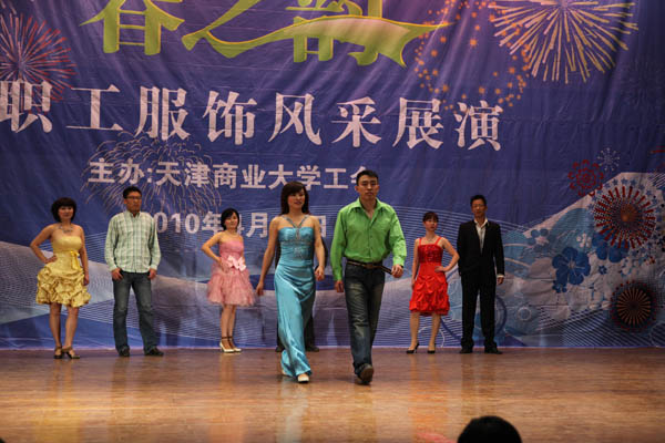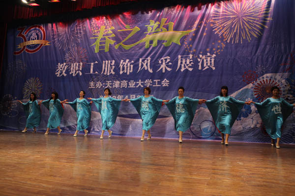 教职工服饰展演比赛在富有节奏感的音乐中拉开帷幕,展演比赛充满激情。由全校 21 个分会组成的 18 支代表队分别登场,大家的表演喜庆热烈,服装异彩纷呈。后勤产业集团充满活力的运动装;艺术学院反映东方韵味民族装;机关高雅现代的职业装;理学院喜庆活泼的时尚装等等。比赛现场掌声、喝彩不断,大家陶醉在欢乐的气氛中。