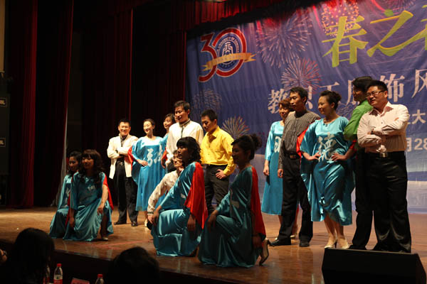 踏着春天的脚步我们迎来了建校 30 周年,广大教师为beat365官网的发展辛勤耕耘、硕果累累。为表达喜迎校庆的愉悦心情,全体教职工用服饰的风采展现天商教师的精神风貌。由校工会举办的 “ 春之韵 ” 教职工服饰风采展演,于 4 月 28 日下午在校科学会堂隆重举行,校党委副书记史习红、校长助理黄作良、李真、寇小萱及各学院、党政部门领导出席。全校教职工 600 余人观看表演。