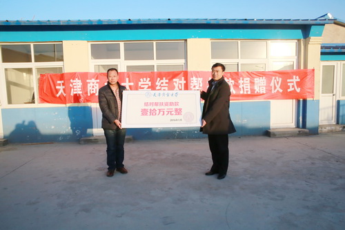 贾青代表学校向庄窝村捐赠帮扶项目资金