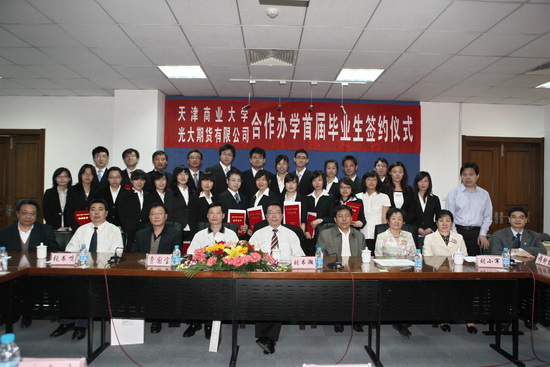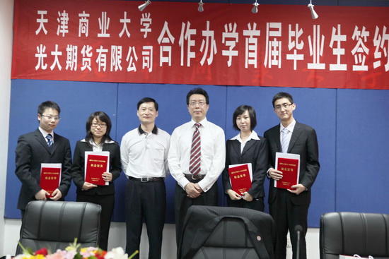 据了解,光大期货班的同学签约率达 90% 以上(未签约的同学中,两人出国深造,一人考取硕士研究生),除部分同学被中国银行、中国光大银行录用外,其余 20 名毕业生经过严格的考核,全部与光大期货有限公司签约,签约的 20 名毕业生将被派驻北京、上海、天津、深圳、宁波等地,从事 IB 辅导员、交易风险控制、综合管理等工作。在目前就业形势严峻的今天,作为国内期货公司携手高校在人才培养模式方面的新尝试,光大期货班在探索办学模式和提升毕业生竞争力上,实现了“快出人才、早出人才、多出人才”的目标。这种校企合作办学的人才培养模式是依托行业发展,以培养学生的应用能力为主线,构建适应现代经济发展需要的理论知识和实践能力“零距离”结合的培养体系,开创了国内紧密型校企合作的先河。