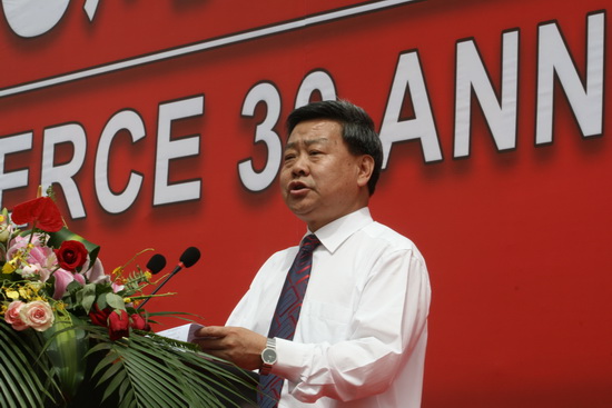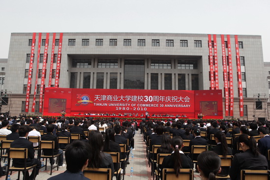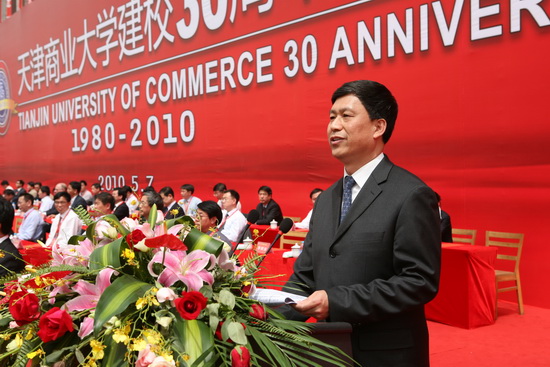 他说, 30 年来,学校经历了三个历史发展阶段。一是上世纪 80 年代的创建成长期。学校围绕商业办教育,办好教育促商业,构建了服务商业的基本学科专业体系。二是 90 年代的快速发展时期。学校走开放办学之路,通过服务社会求支持,服务经济求发展,在扩大办学规模,探索后勤社会化,增强办学实力和社会影响方面创造了经验。三是进入新世纪以来的水平提升时期。学校坚持质量立校、人才强校、特色兴校的办学理念,带领全校师生员工团结拼搏,勤奋工作,为商贸服务业和天津地方经济建设做出了贡献,取得令人瞩目的成绩。特别是本科教学评估优秀和更名大学的成功,使学校进入了全面建设高水平商业大学的新时期。经过几代天商人的努力,学校实现了由单科学院向多科性大学的发展,由教学型学院向教学研究型大学迈进,由为商贸行业服务向立足现代服务业为国家和地方经济发展服务的三大历史转变,学校已发展为以商科为主,经、管、工、文、法、理多学科相互支撑协调发展的多科性商业大学。