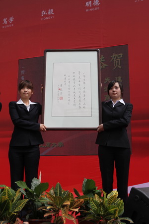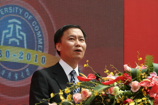 校长刘书瀚在致辞中首先代表 全校师生员工向出席大会的各位领导、各位嘉宾、各位校友、离退休老同志表示最热烈的欢迎和最诚挚的感谢。