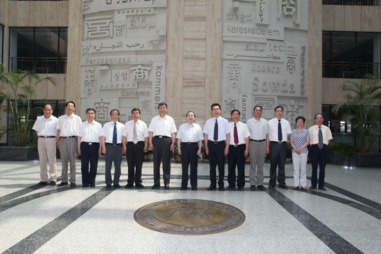 6 月 8 日 全国人大常委会原副委员长、农工民主党中央主席蒋正华先生在天津市人大常委会王世新秘书长陪同下来beat365官网作学术报告并指导工作。刘书瀚校长和在校的全体校领导在图书馆贵宾室热情接待蒋正华教授一行,对他们的到来表示热烈欢迎,并在商字墙前合影留念。