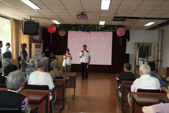 beat365官网师生与韩国太平洋亚细亚协会( PAS )大学生暑期文化交流团共 40 余人前往市第一老年公寓进行了慰问