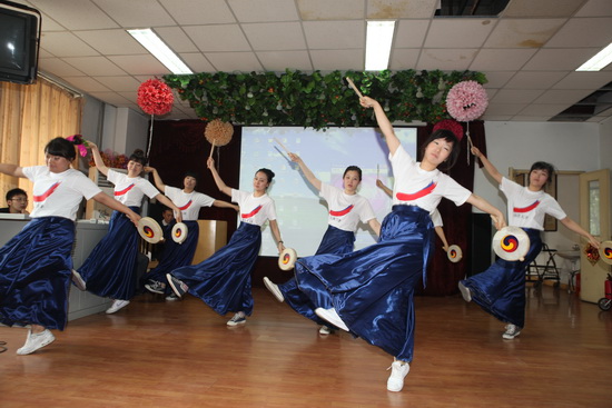韩国学生为老人们表演了韩国传统节目小鼓舞、现代舞和跆拳道
