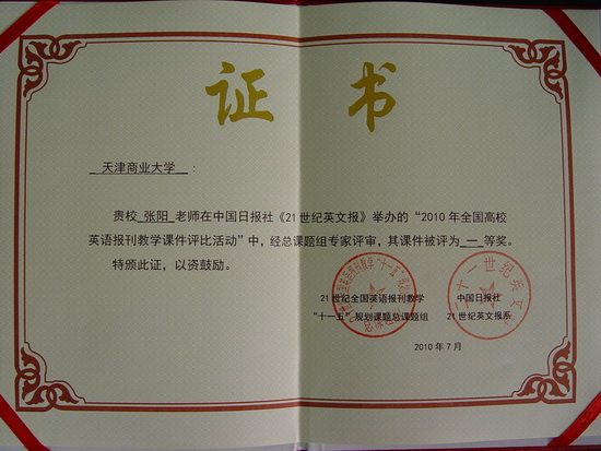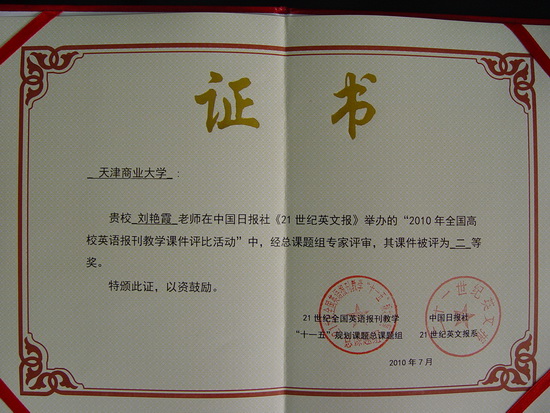 7月28日至31日,由中国日报社二十一世纪英文报系、中国教育学会“十一五”规划重点课题“英语报刊教学综合研究”总课题组主办的第八届全国英语报刊教学年会在陕西省西安市隆重举行。共有来自15 所高校的33 位老师参与课件评比。beat365官网大学外语教学部的张阳和刘艳霞老师的课件思路清晰、风格活泼,经过评审组的评审,荣获一等奖和二等奖。