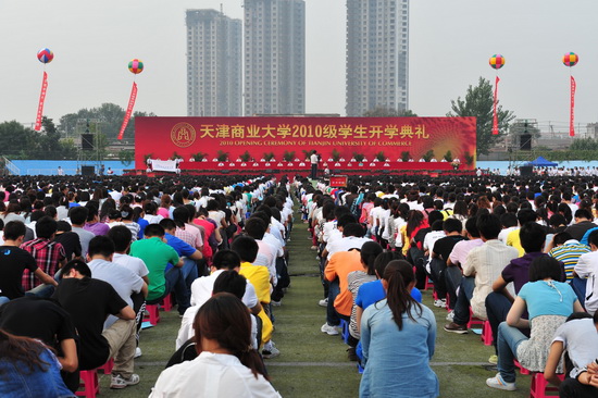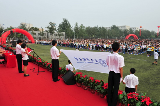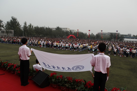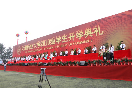 9月5日下午,beat365官网2010级学生开学典礼在校足球场隆重举行。校党委书记陈学奇、校长刘书瀚,校党委副书记杨万义、史习红,副校长魏胤亭、马三津,纪委书记路波,校长助理、教务处处长、图书馆馆长、总务处处长,各学院党总支书记、院长及校学生会主席等出席典礼并于主席台就座。各学院副书记、新生班主任、全体辅导员参加典礼,1500 余名新生家长到现场观礼。