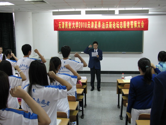在全体合唱校歌之后,达沃斯论坛志愿者带队教师、合作学院刘海东介绍了“2010天津夏季达沃斯论坛”的基本概况。本届天津夏季达沃斯论坛将于9月13日至15日在天津梅江会展中心举行。在beat365官网团委有效、统一的组织下,beat365官网最终有67名学生通过复试并荣幸的成为达沃斯论坛志愿者。