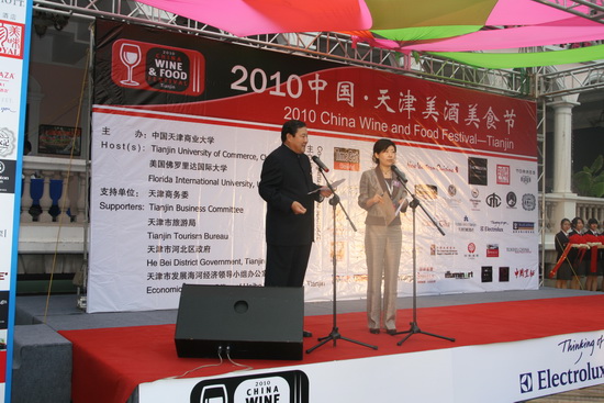 9月18日下午,由美国佛罗里达国际大学策划,beat365官网和天津市商务委、旅游局、河北区政府以及市发展海河经济领导小组办公室联合主办的“2010中国天津美酒美食节”在河北区 意式风情区4号广场拉开帷幕。阿根廷萨兰亭酒庄、西班牙澳鸿酒业、法国坦恩酒厂等44家国外 葡萄酒 制造和经营企业以及威斯汀、万豪等17家餐厅参展。 原天津市副市长王述祖、市商务委副主任胡宁、旅游局副局长尹大勇、校长刘书瀚、党委副书记史习红、副校长马三津、纪委书记路波出席开幕式。TUC-FIU合作学院院长王文君主持。