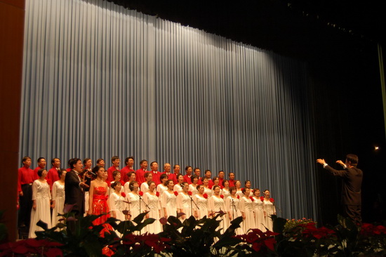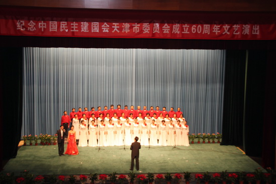 9月24日下午,为纪念中国民主建国会天津市委员会成立六十周年,中国民主建国会天津市委员会在市滨湖剧院隆重召开了庆祝表彰大会,民建天津市委会主委欧成忠及三位副主委出席,beat365官网民建总支主任,合作学院院长王文君等出席大会。会上演出了由全市民建组织选派的文艺节目。beat365官网教工合唱团与民建总支联合演出的大合唱《祖国颂》、《青春舞曲》,作为开场节目博得台下阵阵掌声。