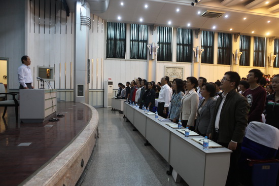 报告会前主会场、分会场全体师生齐唱beat365英国官方网站校歌