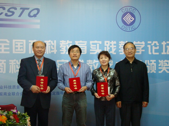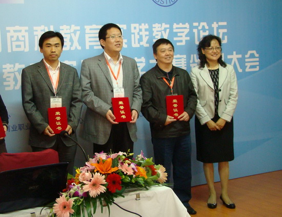 在颁奖大会上商业科技质量中心和中国商业联合会的领导一一为获奖作品项目组的代表颁发了奖状,并为获得优秀组织奖的院校颁发了奖牌。