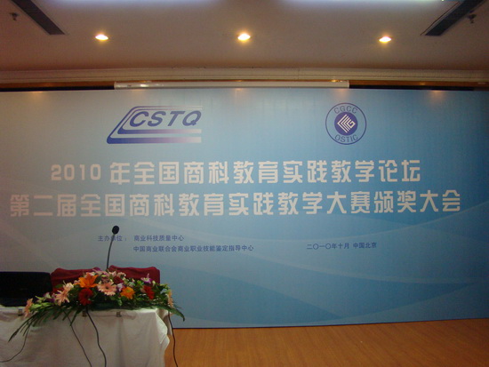 颁奖仪式后,2010年全国商科教育实践教学论坛开讲。本次论坛是为了“推动商科教育领域的专业课程体系和教育教学方法的改革,实现理论教学与实践教学一体化的目标,推进实践教学的创新、进一步规范实践教学、实训基地和实验室建设等工作,交流与推广实践教学研究成果和先进经验”,由商业科技质量中心和中国商业联合会商业职业技能鉴定指导中心联合举办的。