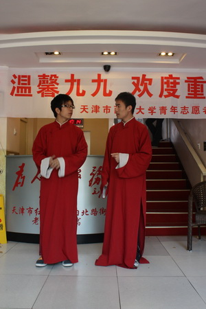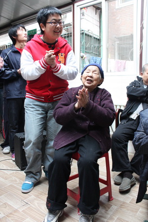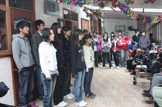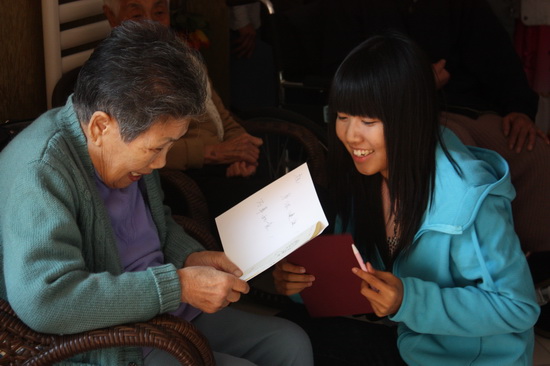 老人们虽然有些行动不便,但在整个活动交流的过程中,他们与志愿者一起有说有笑,还不时地对志愿者们关怀和照顾。老人们是孤单的,他们曾经为这个社会拼搏和奉献,他们应得到更多的关心和照顾;但老人们不是寂寞的,因为有千千万万关心着他们的人会为他们送去欢乐。希望有更多的大学生加入志愿者队伍,老吾老以及人之老,尽自己微薄的力量去传递爱,将中华民族传统美德发扬光大。