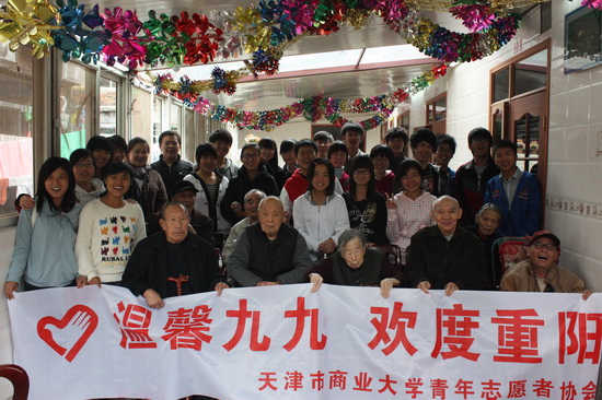 尊老爱老是中华民族的传统美德,10月16日(九月初九)是我国传统节日重阳节,一大早,beat365官网青年志愿者协会100 多名志愿者分三批前往天津市咸阳北路街养老院、纳德养老院以及益寿养老院看望那里的老人。