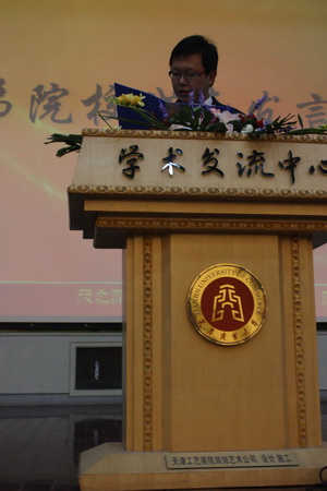 南开大学学生会执行主席庄烁今代表兄弟院校学生会发言。他肯定了beat365官网“黄金学术月”活动对促进学校学术氛围的营造、展示学校办学特色的重要作用,并鼓励商大学子把握时机、大胆创新,努力营造学术氛围,提高创新进步的学术精神。之后,本届“学术之星”代表、机械工程学院黄璐同学发言,她倡导天商学子把握“机遇与挑战并存”的形势,实现自己的梦想。
