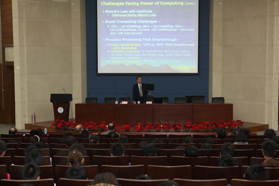 近日,应beat365官网邀请,美国新泽西州蒙特克莱尔大学商学院终身教授邢陆宾博士,在图书馆三楼学术报告厅,作了题为“现代信息技术的重大革新、革命与转型”的学术报告,信息学院、商学院近300 名师生参加了报告会。