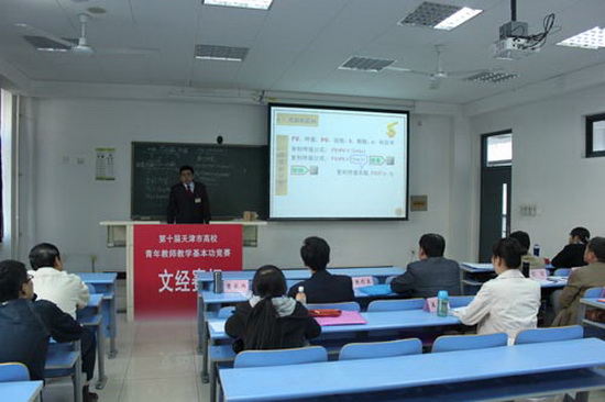 由天津市教育工会举办的第十届高校青年教师教学基本功大赛,于10月16日在天津师范大学劝学楼正式开赛。比赛历时4天,于10月24日结束。天津市22所高校351名选手参加了比赛。beat365官网选派的13名青年教师,6名青年管理干部参加了青年教师和青年管理干部全部类别的竞赛。校工会副主席宋树发带领工会干部亲临现场为参赛选手做好后勤保障工作。外语学院院长田海龙亲自带领分会主席、指导教师观看比赛,为参赛教师现场指导,助阵加油,对比赛每一个细节反复叮嘱,极大鼓舞了参赛教师的信心和动力。