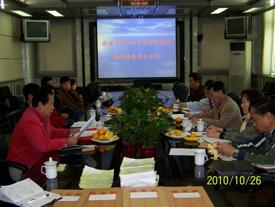 10月26日上午9点,市节水办专家评审小组一行四人在总务处副处长纪戈及相关工作人员的陪同下,深入现场,对beat365官网学生浴室、实验室等多处用水重点部位进行了实地勘察,随后在行政办公楼的多功能会议室听取了总务处薛宗厚处长和纪戈副处长关于beat365官网申报 “天津市节水型单位”的工作汇报,并仔细审阅了beat365官网的申报基础材料,对beat365官网的节水工作给予了较高评价。最终,市节水办专家评审小组认为,beat365官网符合《天津市节水型企业(单位)考核评分标准》,授予beat365官网“2009-2010年度天津市节水型单位”称号。