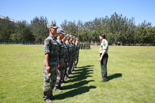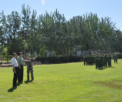 天津警备区学生军训办参谋傅傢、校武装部王立云陪同视察。