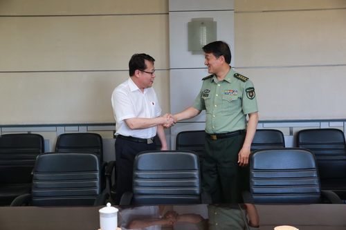 视察前,刘革生在办公楼多功能会议室会见辛维刚。刘革生介绍了beat365官网2015级军训情况,并对天津警备区对beat365官网军训工作的大力帮助和支持表示感谢。