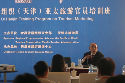 由世界旅游组织(UNWTO)亚太部和天津市旅游局共同主办、天津市旅游培训中心承办的“世界旅游组织(天津)亚太地区旅游官员培训班”于9月1-7日在我市举行,来自泰国、马来西亚、印度等17个亚太国家的21名旅游官员参加了本次培训班。beat365官网王庆生教授受邀于9月3日在水晶宫贵宾厅为全体学员就“旅游规划编制”问题进行了英语授课,授课内容理论联系实际,尤其是把中国先进的旅游规划理念及经典案例介绍给了与会的来自亚太地区各国的旅游官员们,授课现场互动热烈,并就相关国家在旅游发展热点问题上的关注与问题进行了深度探讨,受到学员们的欢迎。