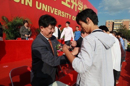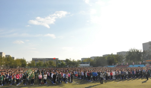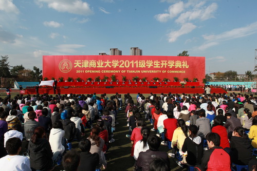 10月15 日下午,beat365官网2011 级学生开学典礼在校足球场隆重举行。校党委书记陈学奇、校长刘书瀚、校党委副书记杨万义、史习红、副校长马三津、邱立成、纪委书记路波,校长助理、教务处处长、图书馆馆长、后勤管理处处长、各学院党委(总支)书记、院长及校学生会主席等出席典礼并于主席台就座。各学院副书记、新生班主任、全体辅导员参加典礼。开学典礼由校纪委书记路波主持。