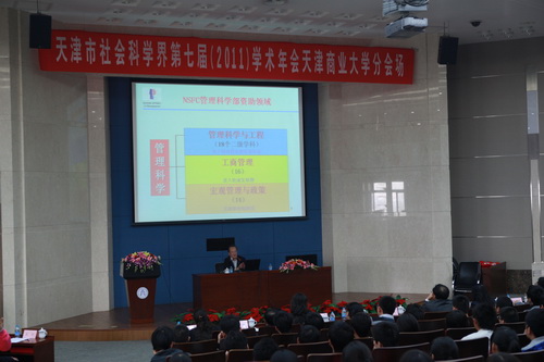 10月19 日下午,以“新规划·新视野·新发展”为主题的天津市社会科学界第七届学术年会beat365英国官方网站分会场学术报告在图书馆三楼报告厅隆重召开。中国科学院科技政策与管理科学研究所原所长徐伟宣教授、天津市社联科研处处长殷雅丽、天津大学管理与经济学部马军海教授出席了会议。校党委副书记杨万义在报告会上致辞。公共管理学院、经济学院、商学院、理学院的300 多名师生参加了会议。报告会由 社科管理处王泓处长主持。