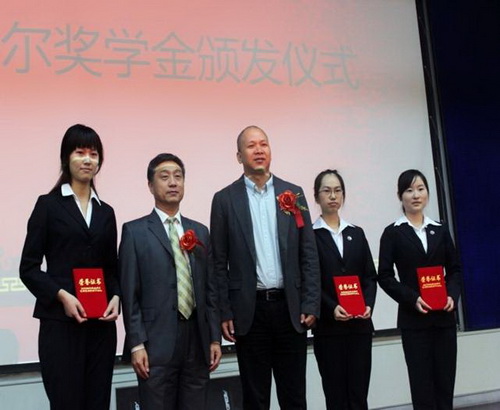 典礼上,朱新武副董事长将爱迪尔珠宝班旗授予 2011 级爱迪尔珠宝班,并代表爱迪尔公司做了发言。朱新武副董事示希望通过商学院先进的办学理念和在学院、企业与学生的共同努力下,珠宝班能够实现为珠宝业培养输送优秀人才的宗旨,并进而达成为社会创造更多财富、为国家强盛多作贡献的终极目的。会上,爱迪尔公司颁发了 08 至 11 级爱迪尔珠宝班学生的奖学金及助学金。对学业优秀和在专业实践活动中表现突出的学生给予了奖励。