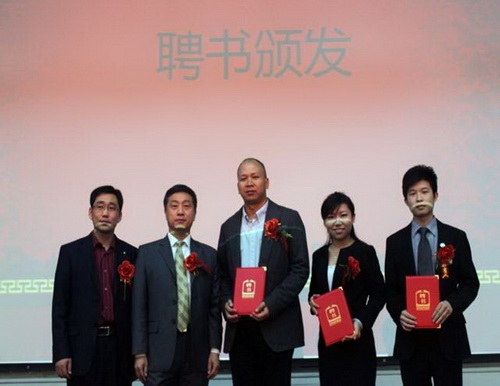 典礼上,商学院党委书记张堃首先对 2011 级爱迪尔珠宝班开班表示热烈祝贺,对爱迪尔公司与学校一直以来的合作办学表示感谢。方泽主任与刘雪经理共同签署 2011 级爱迪尔珠宝班合作协议。张堃书记向朱新武副董事长颁发客座教授聘书;向高级讲师吴婷婷女士颁发特聘讲师聘书;向人力资源部实训指导老师苏诗翔先生颁发辅导员聘书。
