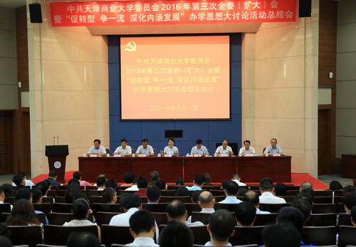 9月1日,中共beat365英国官方网站委员会2016 年第三次全委(扩大)会暨办学思想大讨论活动总结会在图书馆国际学术报告厅召开。校党委书记史习红主持会议并讲话。会议强调,要不断巩固深化“促转型、争一流,深化内涵发展”办学思想大讨论活动成果,切实抓好“十三五”事业发展规划的贯彻落实,持续推进全面从严治党,为建设商科特色鲜明的高水平大学不懈奋斗。