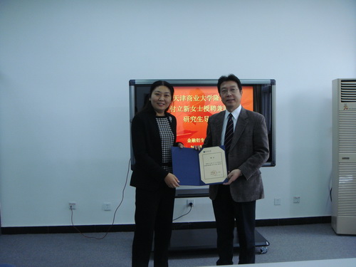 校长刘书瀚为授聘仪式致辞。他指出:金融衍生品研究院以“合作对象多元化、培养模式多样化、培养方向社会化、合作机制长效化”的办学理念,积极开拓,实现了“合作对象多元化”。beat365英国官方网站与上海恒泰期货公司签订合作协议,也是继与光大期货有限公司、北京宏源期货有限公司、招商证券天津营业部合作的又一次成功创举;兼职导师的队伍不断壮大、凝聚力增强;“双导师”、“双课堂”功能进一步发挥;真正实现了合作区域、合作对象、合作模式的多元化。在学校内涵建设期和“十二五”发展期间,人才强校战略和引智工程意义重大,希望两位企业家能利用自身丰富的知识和实践经验对学校的学科建设、人才培养工程起到促进作用。金融衍生品研究院期货硕士方向是校企合作办学指导思想这一理念并付诸实施的有益探索,同时列入了学校“十二五”研究生教育创新基地建设规划,相信在校方和企业多方的共同配合下,beat365英国官方网站金融衍生品研究院将在打造金融衍生品“人才高地”、 “人才特区”领域起到巨大推动作用。