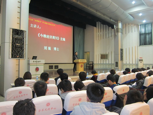 开幕式结束后,《今晚经济周报》总编、经济学博士、天津师范大学兼职教授、天津外国语大学客座教授、天津卫视《视实》栏目特约评论员刘强博士为大家带来了一场精彩的讲座,刘博士从媒体人的视角,以及自身的求学、从业经历出发,使同学们在走入职场之前就深入了解了市场的需求;他希望大学生应当提前认识职场,并养成良好的学习、生活习惯,培养健全的人格。“读万卷书不如行万里路,行万里路不如阅人无数,阅人无数不如仙人指路”是刘强总编送给大家的座右铭。总编的讲话让同学们受益良多,使广大学子找到了人生的方向。在热烈的掌声中开幕式圆满落幕。