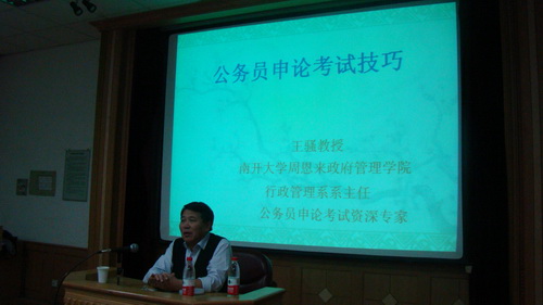 作为公务员考试问题研究的资深专家,王骚教授从公务员考试趋势、考录途径、考查重点、命题原则、考试技巧、评判标准、复习策略等方面给学生们做了系统讲解。同时,王骚教授还对学生们提出的公务员考录问题,逐一做出了耐心细致的解答。王骚教授幽默、真诚的报告风格,给在场的学生留下了深刻的印象,与会学生纷纷表示 受益匪浅。