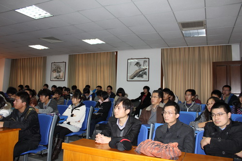 11月23日下午三点,应公共管理学院邀请,在教务处的安排下,中国指数研究院天津分院副总监钟文辉在商业大学图书馆二楼多媒体会议室做了关于中国房地产业数据研究分析与土地资源管理学科学生职业发展规划的研讨报告。公共管理学院土地资源管理系全体教师、土地资源管理专业 09 级及 11 级部分学生 80 余人参加了讲座。活动由土地资源管理系主任郝建新教授主持。