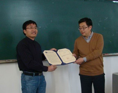 报告会结束后,理学院院长罗蕴玲教授再次走上讲台,她说,感谢常教授从不同侧面给我们介绍了蚁群算法及其在时变网络中的应用,将高深的前沿科技用浅显易懂的语言做了精辟的讲解,开阔了我们的视野。信息工程学院和理学院此次联合荣幸地聘请常青教授为高水平的兼职教授,也是为了指导和带动两个学院的学科建设和科研的发展。衷心希望合作愉快!我提议大家再次以热烈的掌声对常青教授的精彩报告表示感谢。